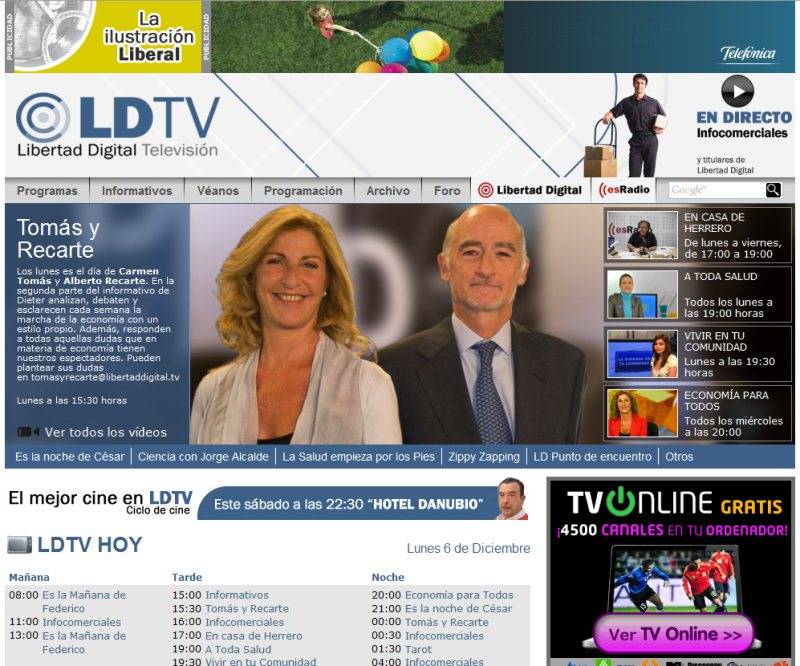 En la nueva portada podrá ver la programación del día, la información relevante de nuestros programas y los últimos vídeos. El foro se ha renovado para hacerlo más versátil y fácil de usar. Todas las formas en que puede ver Libertad Digital TV se encuentran ahora enumeradas en una sola página. En el apartado de programación podrán consultar lo que vamos a emitir durante la próxima semana.