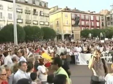 Concentración en la Plaza Mayor de Burgos en repulsa por el atentado contra la Casa Cuartel.