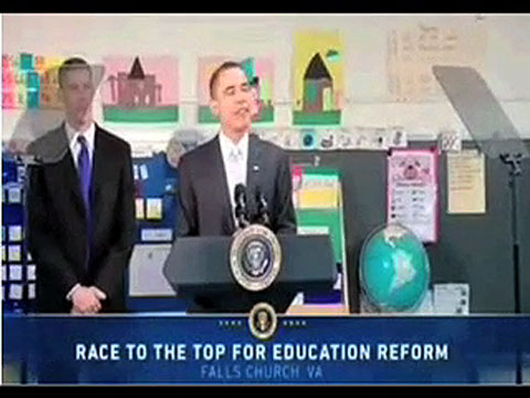 Obama necesita teleprompter para un discurso en un colegio