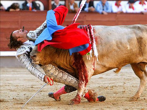 Espeluznante cogida a Julio Aparicio en el cuello