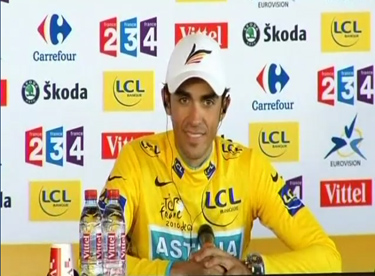 El ciclista español del equipo Astana Alberto Contador se ha mostrado exultante tras aventajar en 31 segundos a Andy Schleck, su máximo rival por la victoria en el Tour de Francia, en la contrarreloj final de la ronda gala, con lo que ha sentenciado así su tercer triunfo en esta carrera, y ha reconocido que ha sufrido "muchísimo" y que no podía expresar lo "contento" que estaba.