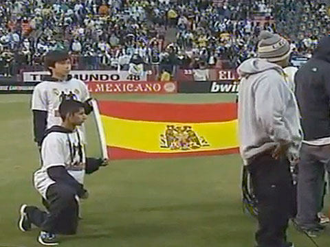 Error con la bandera de España antes del partido del Real Madrid