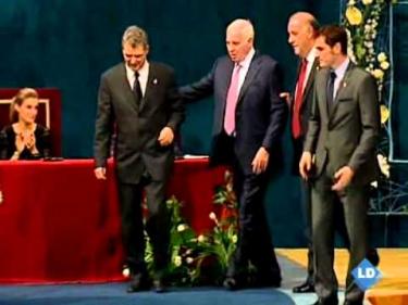 Vicente del Bosque ha ofrecido a Lusi Aragonés, también presente en la gala, el Príncipe de Asturias. Posteriormente, en su discurso, el técnico ha destacado "la modestia" de un grupo de futbolistas, "un arma tan poderosa como su mismo y arrebatador juego".