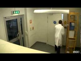 En un laboratorio, tiene una curiosa forma de dar los buenos días. Una broma a primera hora para llevar mejor el día...