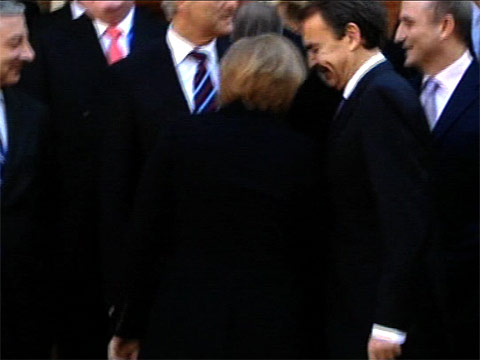 Zapatero golpea sin querer a Merkel con la cabeza