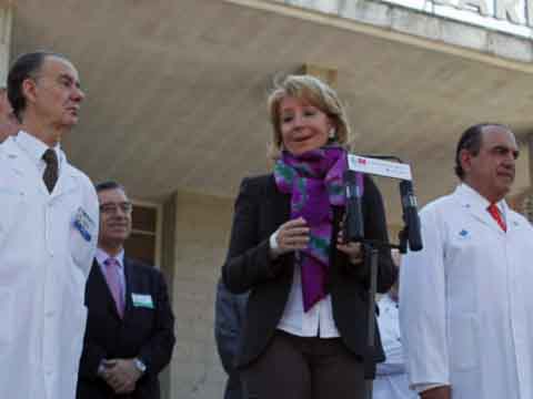 Esperanza Aguirre se ha dirigido a los presentes a su salida del hospital tras su operación de cáncer de mama.