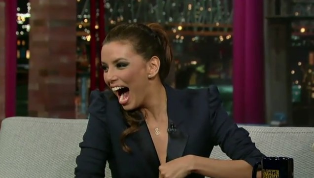Eva Longoria presenta su libro de cocina en el show de David Letterman.