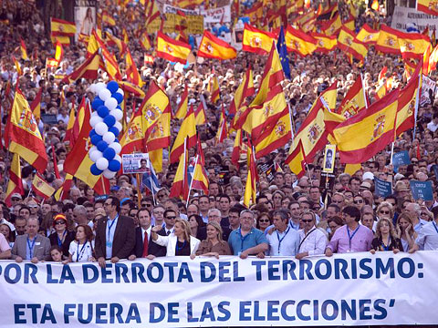 Federico Jiménez Losantos y Dieter Brandau junto a César Vidal, Luis Herrero, Alberto Recarte y Luis del Pino retransmiten en directo la manifestación convocada por la Asociación de Víctimas del Terrorismo bajo el lema "Por la derrota del terrorismo, ETA fuera de las instituciones".