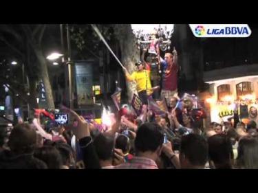 Unos 12.000 aficionados culés se han reunido en la Fuente de Canaletas para celebrar la consecución del título de Liga.