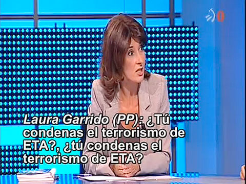 Debate de candidatos a las Juntas Generales en el País Vasco, donde el representante de Bildu, Martin Garitano, no condena el terrorismo de ETA cuando le preguntan sobre ello. El representante del PSOE, Eneko Andueza, guarda silencio (15-05-11)