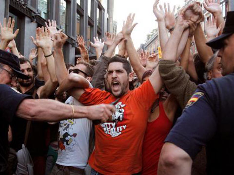 El movimiento 15-M se ha caracterizado desde el principio por ejercer la violencia. Ellos se consideran pacíficos.
