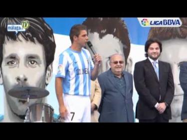 Unos 15.000 aficionados del Málaga han acudido a la presentación oficial de Joaquín Sánchez como nuevo jugador del equipo. En el acto, el gaditano ha vuelto a demostrar su arte y salero.