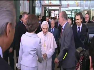 El presidente José Luis Rodríguez Zapatero ha recibido al Papa en el aeropuerto de Barajas a su llegada para la JMJ.