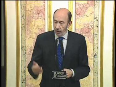 Rubalcaba afirma que el chivatazo es un invento del PP porque "la lucha contra el terrorismo va bien, porque estamos a punto de acabar con ETA".