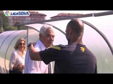 Guardiola recibe a Pasqual Maragall en el entrenamiento