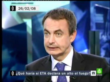 En una entrevista en La Sexta, Zapatero dijo que para que pudiera haber un escenario distinto, esto es una nueva negociación, con ETA sólo valdría "una declaración de final definitivo, total y absoluto" del fuego y "de entrega de las armas". Ayer no dijo ni una palabra de entregar las armas.