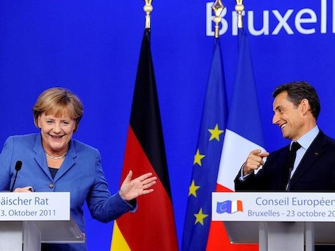 Angela Merkel y Nicolas Sarkozy fueron preguntados en rueda de prensa acerca de las nuevas medidas de ajuste prometidas por Silvio Berlusconi. Su reacción (y la de los periodistas) fue muy significativa.