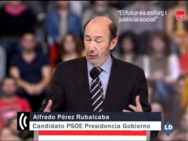 "Ciudadanos de Cataluña: ¡Votadnos!", pedía Rubalcaba en un mitin en el que Chacón acusaba a Rajoy de "fraude democrático" por su programa oculto.