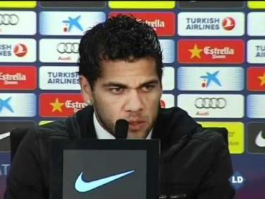 Dani Alves ha reconocido que "esta liga es un reto apasionante" y que lucharán por remontar los seis puntos que les separa del Madrid. Además, dice que mucho ya le darían la copa al Madrid y que están tirando cohetes.
