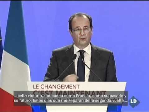 El candidato socialista a la presidencia de la República francesa ha ganado la primera vuelta con un escaso margen sobre Sarkozy. Para Hollande, "el cambio está en marcha".