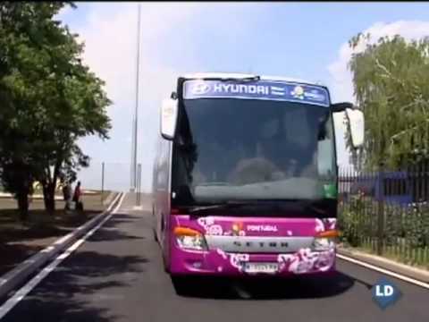Las selecciones nacionales de España y Portugal ya están en la localidad ucraniana de Donetsk donde mañana se enfrentan en las semifinales de la Eurocopa. Ambos equipos han coincidido en el aeropuerto, donde se han encontrado un calor sofocante.