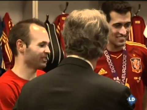 El Príncipe Felipe ha acudido al vestuario de la selección española para felicitar a los jugadores tras ganar a Italia en la final. Mariano rajoy, presidente del Gobierno, también a bajado a hablar con los jugadores.