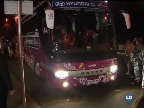 Los jugadores de la selección española llegaron al hotel de concentración de Kiev tras haber hecho historia al ganar la Eurocopa en la final ante Italia.