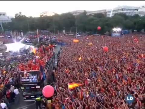 La selección española ha recorrido en autobús descapotable las calles de Madrid haciendo las delicias de los miles de españoles que han acudido a verles de cerca y celebrar la victoria en la Eurocopa.