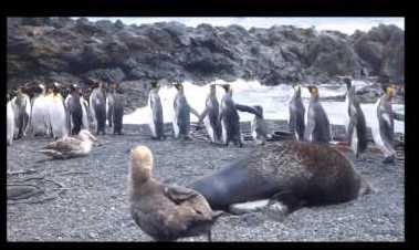 Un león marino trata de copular con un pingüino
